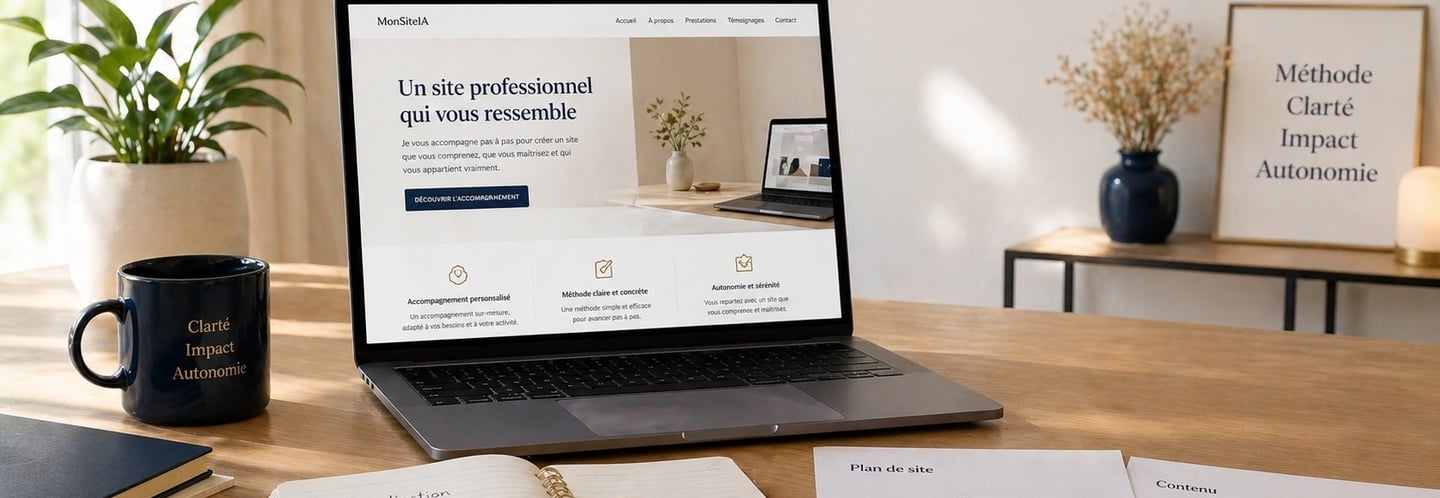 Accompagnement en présentiel pour créer un site professionnel avec l’aide de l’IA, tout en apprenant à le comprendre, le modifier et le faire évoluer.
