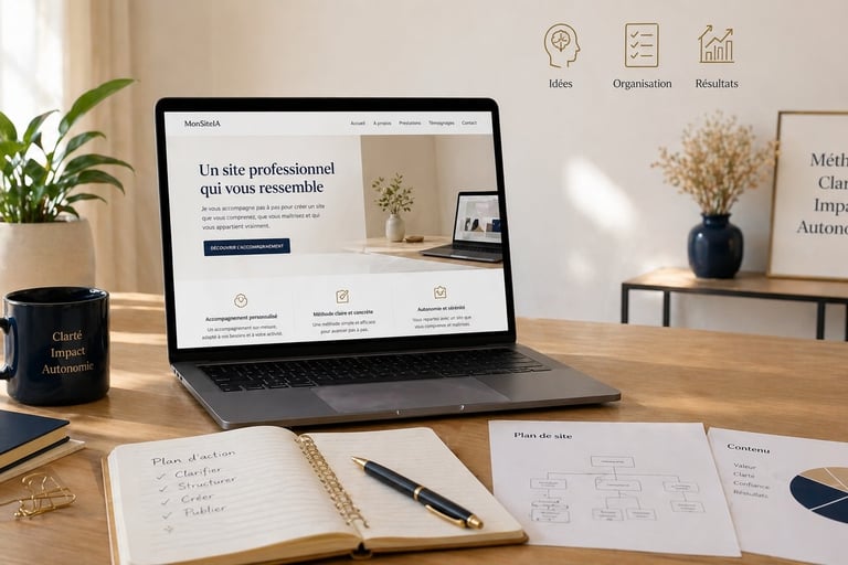 Accompagnement en présentiel pour créer un site professionnel avec l’aide de l’IA, tout en apprenant à le comprendre, le modifier et le faire évoluer.